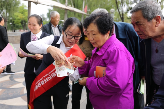 近日,寿阳农商银行组织员工走上街头,通过发放宣传折页,现场讲解新版人民币等金融知识,有效增强广大市民金融风险防范意识。(冀玉琪)