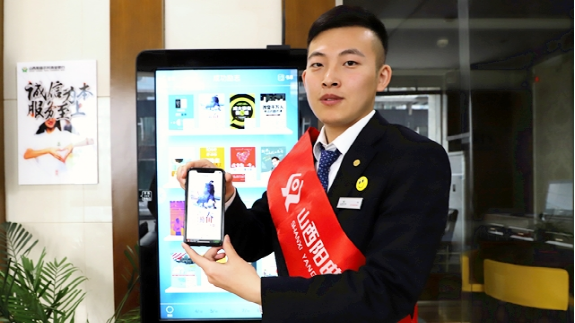 阳曲农商行不断创新“互联网+”金融服务,近日在网点安装电子书借阅机,读者扫描二维码便可下载阅读,享受阅读快乐。(谢芳)