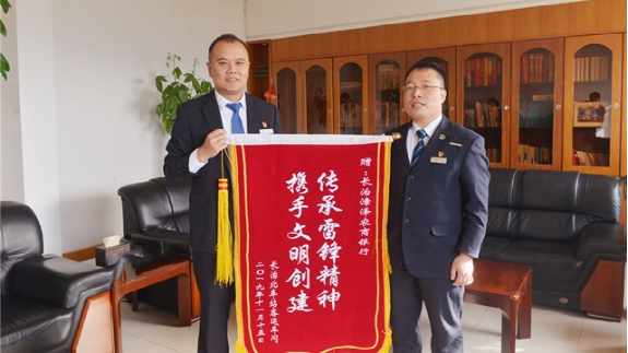 近日,漳泽农商行收到一面“传承雷锋精神 携手文明创建”锦旗。据悉,该行在开展“齐心共创文明城市 志愿者服务在行动”活动中,志愿者们在长治火车北站,清扫纸屑烟头,清洁乘客座椅,受到了大家的好评,同时也得到了长治火车北站的肯定。(付强)