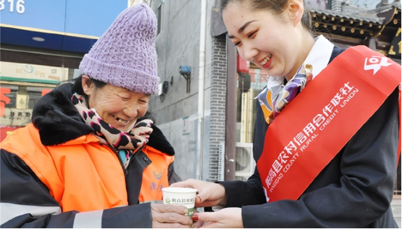 阳高联社开展“情系环卫工 冬季送温暖”系列活动,在网点设置“爱心驿站”为环卫工人提供热水,取暖休息方便,并为辖内环卫工送去棉手套、口罩等防寒用具,受到了社会一致好评。(李文春)