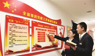晋中开发区农商行党委按照围绕中心、服务大局、强化功能的要求,把“一个支部一特色,一个党员一面旗”作为培育党建品牌文化重要元素,开展“一网点一品牌”创建活动,使辖内各支部均成为“六有阵地”,同时按照“五小建设”标准,对各支部的基础设施进行了完善,使党组织的凝聚力、战斗力得到了显著提高。
