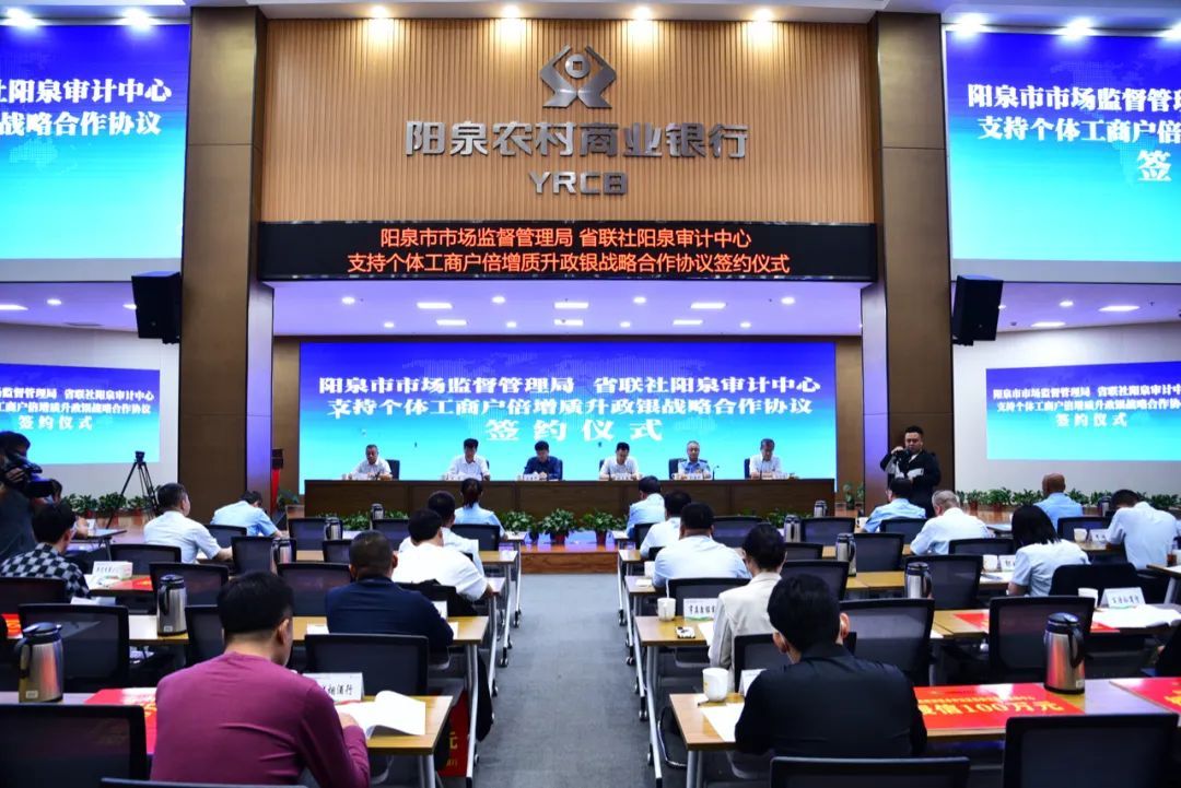 9月20日,阳泉农信社与阳泉市市场监督管理局联合举办“支持个体工商户倍增质升政银战略合作”签约仪式。