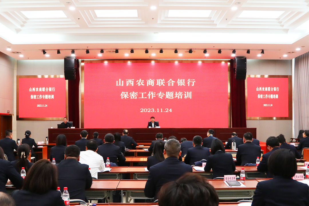 11月24日,山西农商联合银行组织开展保密工作专题培训,全面提升保密工作水平和全员保密意识,为农信事业高质量发展筑牢保密防线。省国家保密局局长和督查处处长应邀现场指导授课。省农商行党委委员、副行长聂宏伟主持并提出要求。