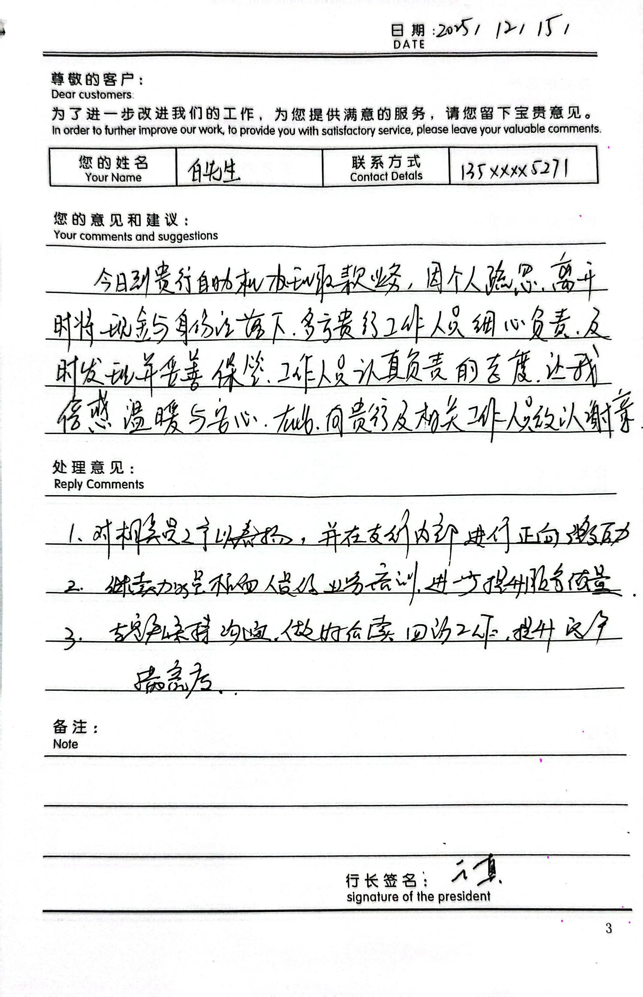 “真是太感谢你们了!要是身份证和这笔钱丢了,我都不知道要多跑多少路、添多少麻烦,太谷农商行的服务真是没得说,百姓银行值得信赖!”近日,在太谷农商银行西关支行的营业大厅里,客户白先生紧紧握着大堂经理的手,激动地表达着谢意,随后在意见簿上写下了满满的表扬话语,字里行间都透露出对支行工作人员的认可与感激。