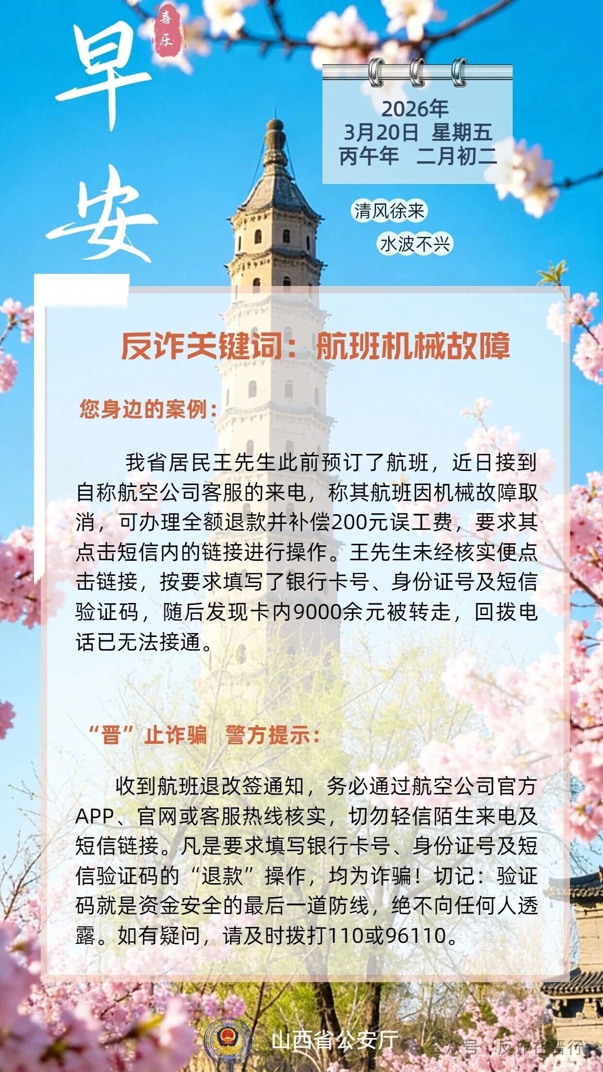 反诈关键词:航班机械故障